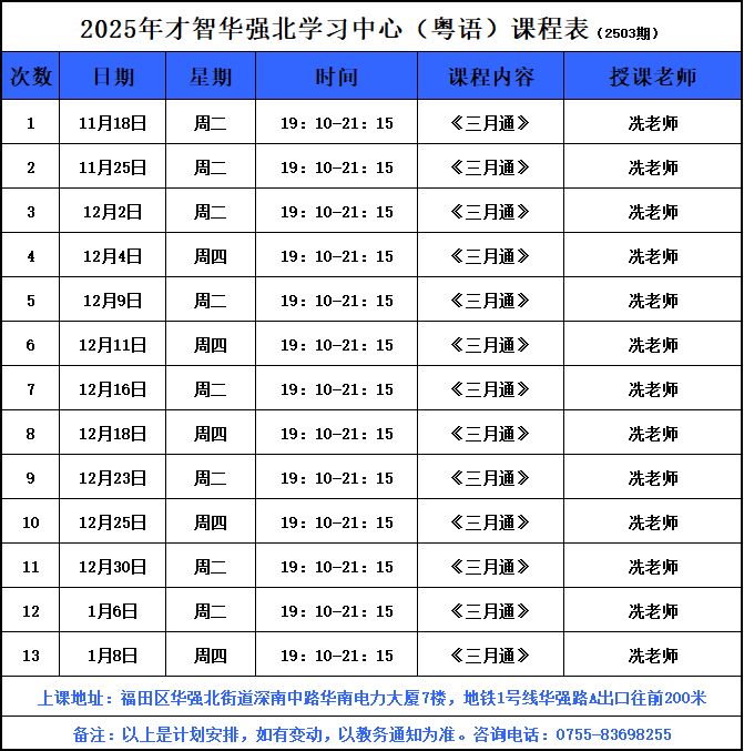 2025年11月最新粤语课程表,请自行下载